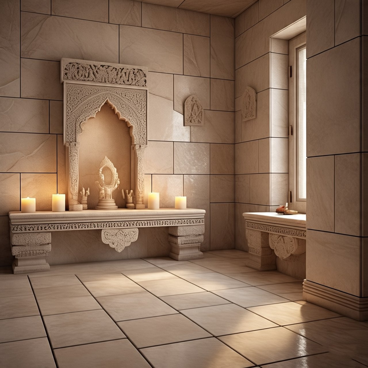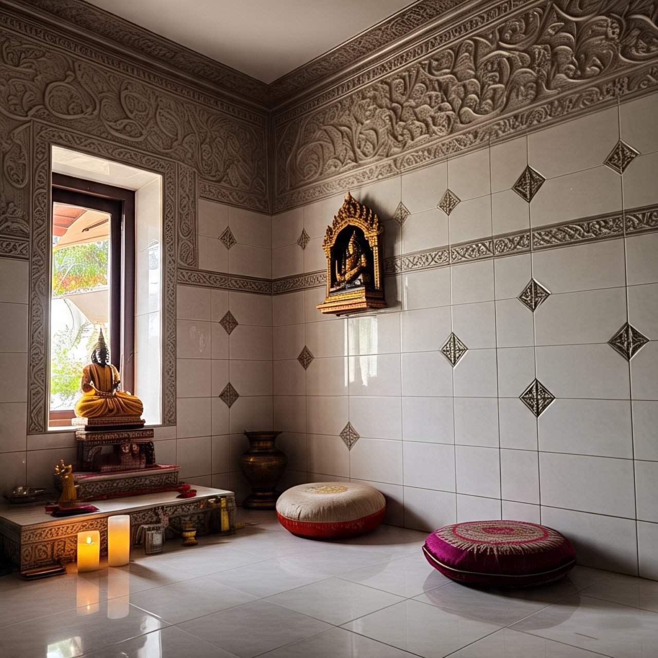 Elevate the sacred space of your home with our Pooja Ghar wall tiles. Designed to reflect spirituality and serenity, these tiles feature elegant patterns, divine motifs, and vibrant textures. Perfect for creating a peaceful and divine ambiance in your prayer area. Durable, easy to clean, and radiating traditional charm – ideal for every spiritual corner.